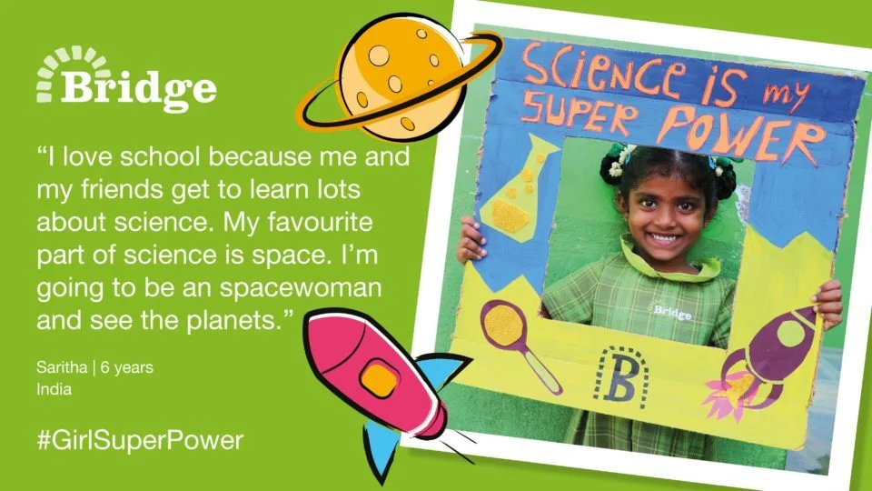 - Little six-year-old Saritha from India wants to travel to the stars.